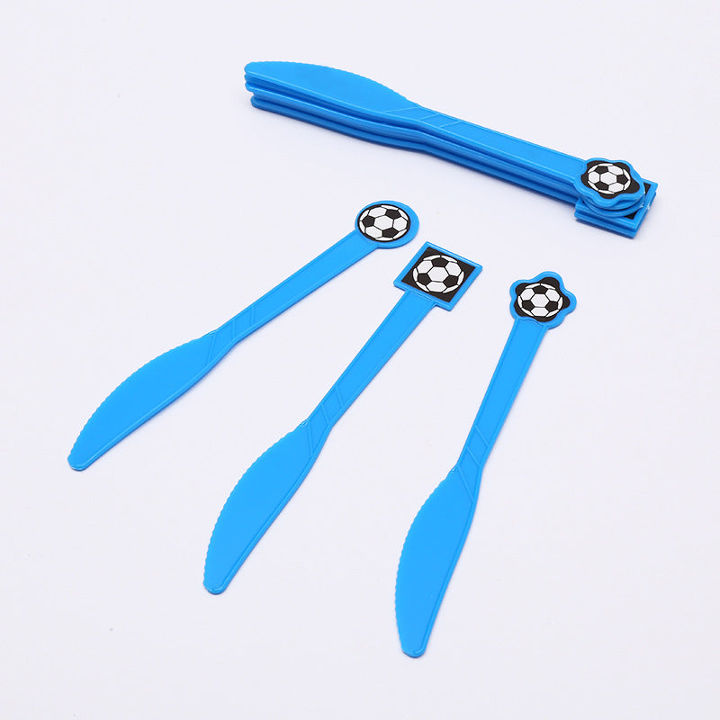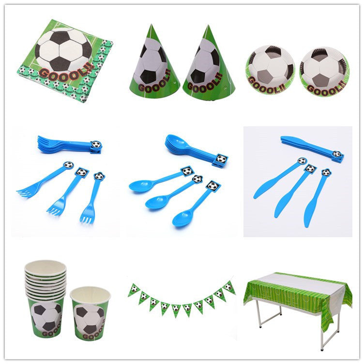 Football Package Content: 10X Knives + 10X forks + 10X spoons + 1X tablecloth + 6X hats + 10X cups +10X 7-inch plates + 20X paper towels + 1X banner